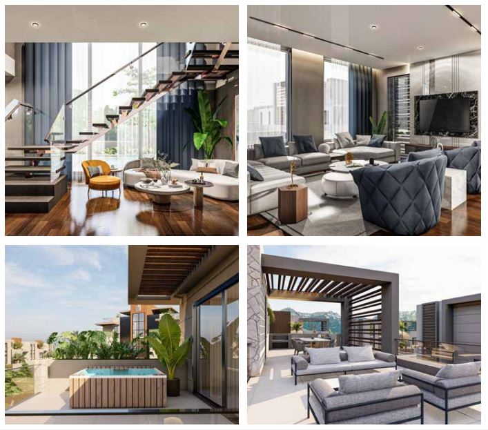 نقشه بزرگ اتاق ها، استخر عمومی از جمله امکانات آپارتمان ها بوده و استخر اختصاصی ٢١ مترمربعی، اتاق های مستر، اتاق مخصوص کمدها، تراس های بزرگ و دلباز، جکوزی و فضای باربیکیو از امکانات ویلاهای این مجموعه می باشند.