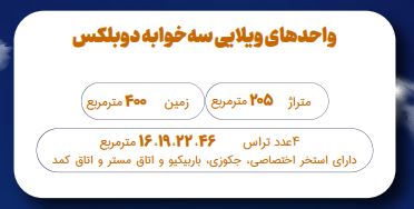 این مجموعه دارای واحد های آپارتمانی دوخوابه لافت، سه خوابه و واحد های ویلایی سه خوابه دوبلکس می باشد.